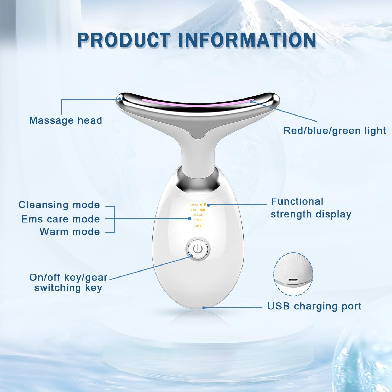 - 【Massager for Facial and Neck】Ergonomic massage head smooth curves that easily glide over the contours of your face, neck, shoulder, arms. Apply your favorite lotion or essence, and you can start enjoying the comfortable and relaxed experience that the heat face massager brings you.